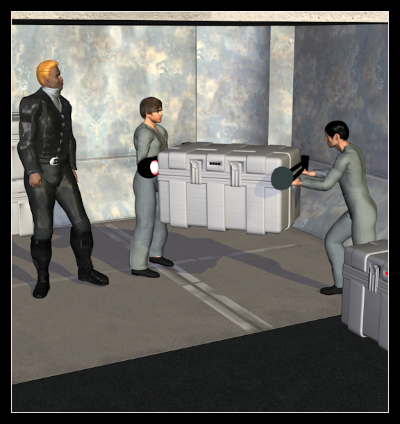 Fortunately the guards didn't seem to care. They went on about their business as the ensign took a towel and a dry set of coveralls out of the fold-out locker.