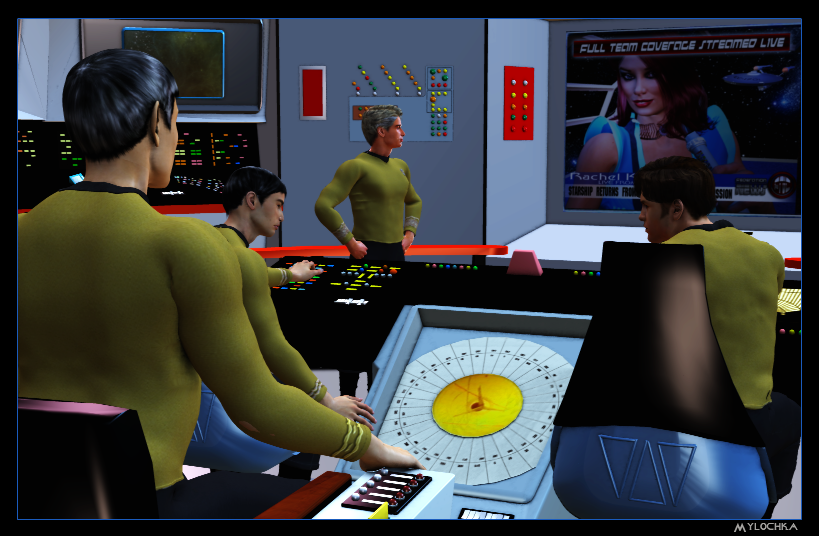 After this answer, Commodore Calvin stepped forward and announced, "That's all for now. You'll have ample opportunity for lengthier, more detailed interviews with the Captain and his crew later on. Thank you." He gave his most winning smile, but nothing else, and firmly led Spock and Sulu away.