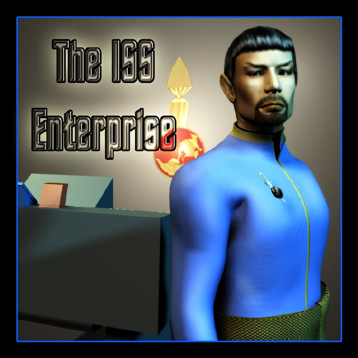 Ruth whirled, gasping. The man who stood at the transporter controls was Spock – or at least someone who looked like Spock – except he had a neat goatee and wore what looked like a modified dress uniform in a muted blue color, with a scarf of lighter blue at his throat.