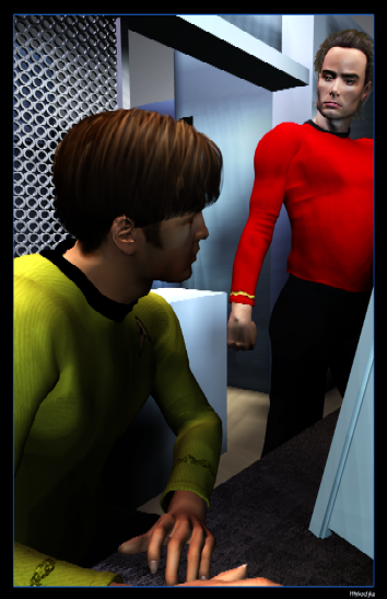 Del blinked in surprise as Sulu slid into the vacant seat opposite him in Rec Room five. It wasn't like his old friend had been snubbing him, but between Kam's full time jobs of being the Divine Helmsman and keeping up with one and a half girlfriends, he wasn't left with a lot of time for chit-chat.