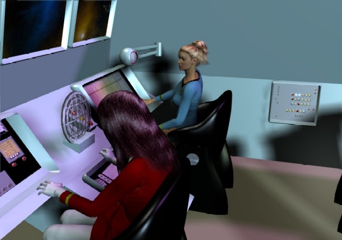 Kel had no time for such insubordination, and to convey this he strode to the platform and slapped the Antari harshly across the face. The undeniably beautiful violet eyes blazed, and the Indiian's voice said calmly, "Lieutenant Commander Ruth Maxwell Valley, Lieutenant Jilla Majiir. We were sent to explore and investigate the space phenomenon into which our craft was heading when you illegally locked your tractor beam onto us. We lost communication with our ship and therefore are unaware of her location. Does that satisfy you, Commander?"