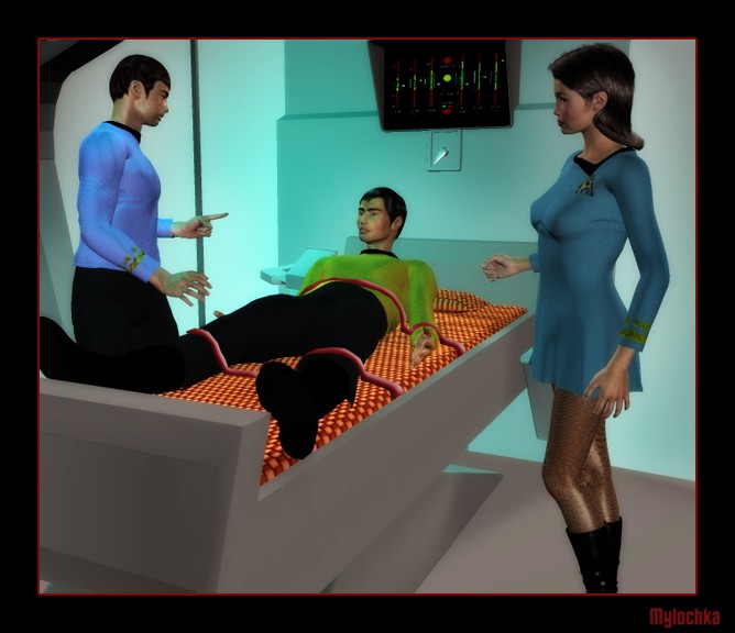 "Ruth,” he said softly, “Sulu should be coming around soon. I think it might help you both if you were there when he wakes up and realizes...." McCoy's voice trailed off.