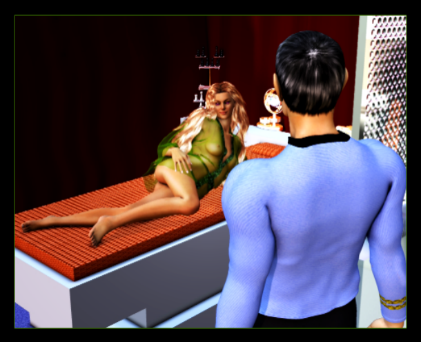 Surprised , delighted, McCoy moved to meet her. “Natira.” He took her in his arms, realizing how much he had missed her. It had been nearly a year since he had seen her. “Wife.” They kissed and he thought, thanks, Jim. I really did need this.