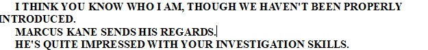 "But he was actually followin' orders from someone usin' th' name Kane?"