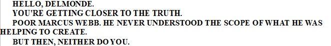 "Where is Webb?" Del typed, his fingers moving rapidly across the interface.